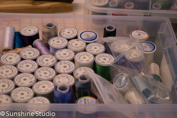 When I want the quilting to be more subtle and play more of a background role I chose either the Aurifil 50 wt cotton or the Superior Threads Sew Fine 50 wt Polyester thread in a colour that blends. I have a spool in every colour of the Sew Fine 50. Got to love the thread of the month clubs especially as when I joined there was free shipping to Canada. Not sure if that deal is still going on as I don’t belong to the clubs anymore.
